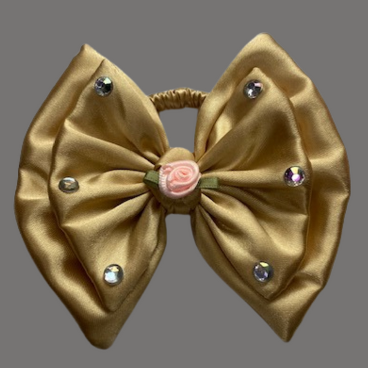 Elegant Satin Bow Scrunchies with Rhinestones and Floral Accent